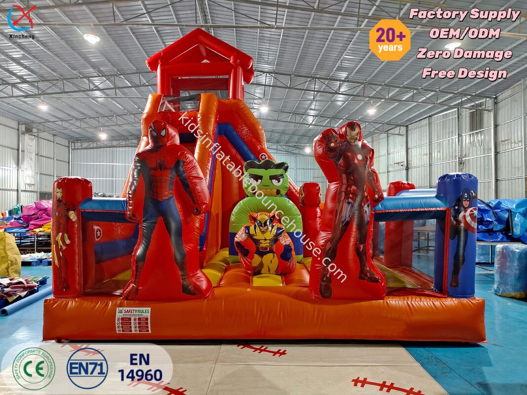 Esta emocionante casa de boliche inflável com tema dos Vingadores apresenta gráficos de super-heróis e um escorregador brilhante, criando uma experiência de jogo imersiva. A construção robusta garante diversão segura para pular e escorregar para crianças em festas e eventos.