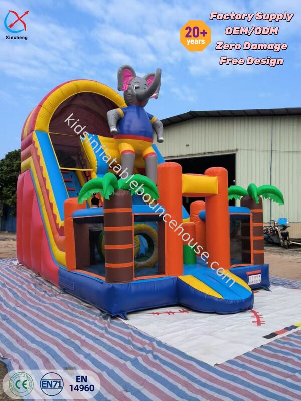 Esta emocionante casa inflável com tema de elefante possui gráficos vibrantes e um design de obstáculos de deslizamento, criando uma experiência de jogo imersiva para as crianças.A construção robusta garante salto seguro e divertimento de deslizamento em festas e eventos.